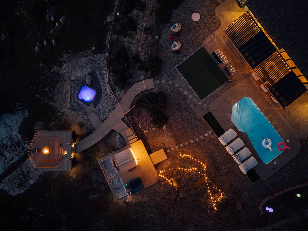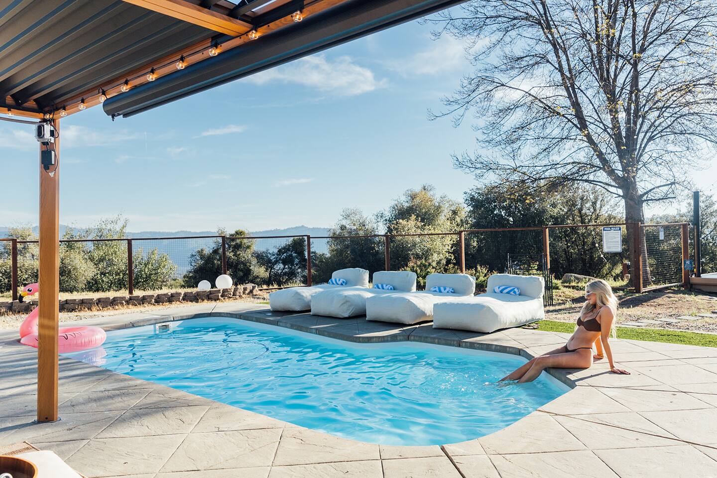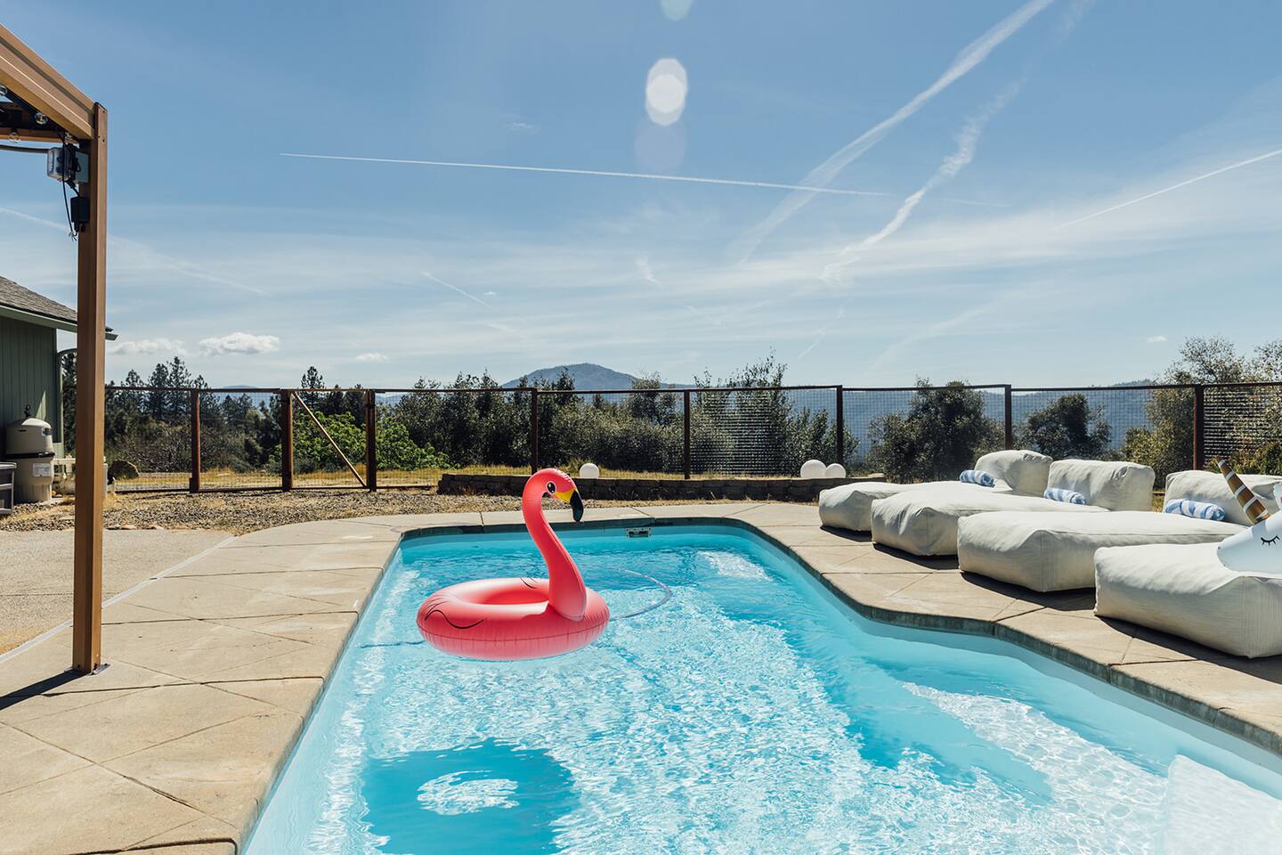 👧This property is designed with adults in mind, though all ages are welcome. Please note that certain amenities—including the pool, spa, cold plunge, sauna, hammocks, and gym—may not be safe for children. By booking, you acknowledge and accept responsibility for supervising any children in your group. 🏊Pool - The pool is not heated; it's open year-round. It's cleaned before and after each stay, but due to wind and our natural surroundings, leaves and small debris may still get in. A skimmer is provided to clear these during your stay. An automatic pool vacuum is installed to clear debris at the bottom of the pool. Please do not unplug/remove it from the water under any circumstances, as doing so will result in severe damage to the pool equipment. If you find the pool excessively dirty upon arrival, please let us know right away, and we will address it ASAP. 🪥We have a routine pool service every Tuesday between 8 am to 10 am. During this time, our pool technician may enter the backyard through the side fence gate to treat and sanitize the water. He will not access any other part of the house and should stay no more than 30 minutes. If you have any issues with this, please let us know ahead of your check-in and we're happy to reschedule. 🦺For your safety please: 🚫Don't run/jump on/crawl under/climb over any objects such as hammocks, handrails, decking, or walkways. No rough play. 🚫Avoid venturing into locations with steep slopes, dense vegetation, and bushes. 🚫Pets must be leashed, and children must be supervised by an adult at ALL times. 🚫No animals allowed in the pool or gym. ❗The backyard is partially fenced; the pool is not fenced or covered. 🎦There are exterior cameras on record 24/7. The cameras are on the front and south side of the house, facing the front entrance and the main driveway. There are no cameras inside the house or in the backyard/pool area. ❄️Chains - We are at about 2800 feet elevation and could get snow during the winter months. California Highway Patrol and the National Park Service may require chains in wintery/snowy/icy conditions. Please be sure to check the weather before your trip and bring a vehicle and necessary equipment capable of navigating in these conditions. 🧱Property Boundaries - please do not trespass on neighboring properties. Most of the property line is marked by stakes on the ground. ⛰️Due to our natural surroundings, you may occasionally encounter wildlife & insects on the property. While we implement professional pest control, these critters are part of mountain living and may sometimes find their way in, that's why it's especially important to keep exterior doors closed. If you notice any critters during your stay, please reach out to us & we'll address them promptly. 📭We do not have a mailbox at the house, so please kindly refrain from sending anything to the property. We are not responsible for lost or misdelivered packages.