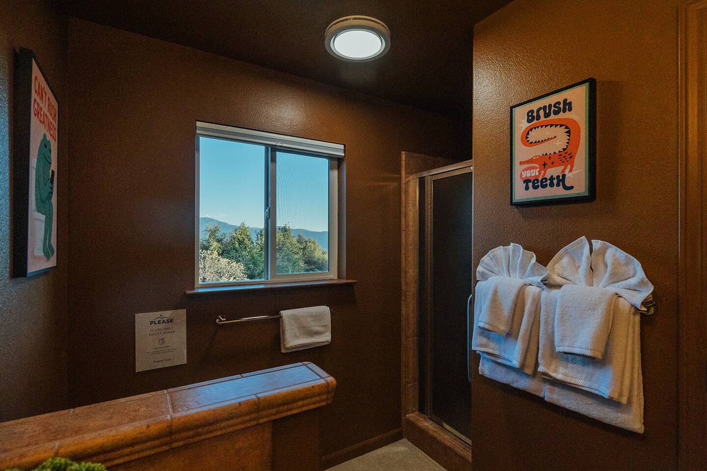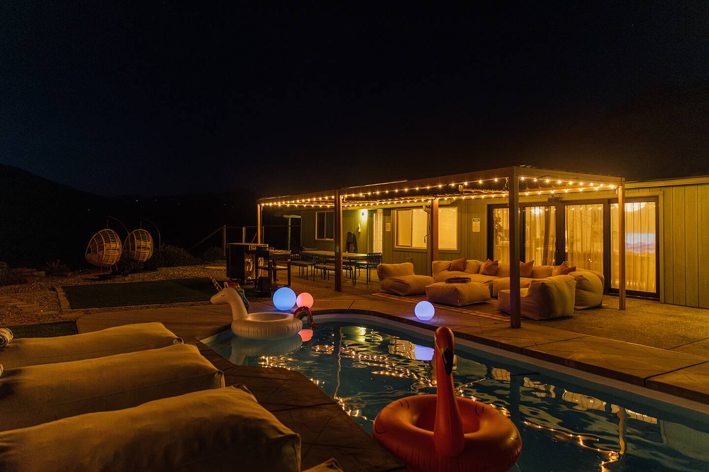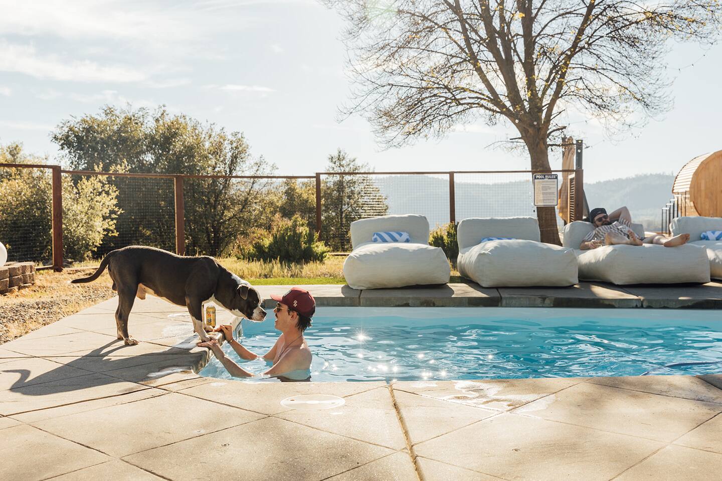 👧This property is designed with adults in mind, though all ages are welcome. Please note that certain amenities—including the pool, spa, cold plunge, sauna, hammocks, and gym—may not be safe for children. By booking, you acknowledge and accept responsibility for supervising any children in your group. 🏊Pool - The pool is not heated; it's open year-round. It's cleaned before and after each stay, but due to wind and our natural surroundings, leaves and small debris may still get in. A skimmer is provided to clear these during your stay. An automatic pool vacuum is installed to clear debris at the bottom of the pool. Please do not unplug/remove it from the water under any circumstances, as doing so will result in severe damage to the pool equipment. If you find the pool excessively dirty upon arrival, please let us know right away, and we will address it ASAP. 🪥We have a routine pool service every Tuesday between 8 am to 10 am. During this time, our pool technician may enter the backyard through the side fence gate to treat and sanitize the water. He will not access any other part of the house and should stay no more than 30 minutes. If you have any issues with this, please let us know ahead of your check-in and we're happy to reschedule. 🦺For your safety please: 🚫Don't run/jump on/crawl under/climb over any objects such as hammocks, handrails, decking, or walkways. No rough play. 🚫Avoid venturing into locations with steep slopes, dense vegetation, and bushes. 🚫Pets must be leashed, and children must be supervised by an adult at ALL times. 🚫No animals allowed in the pool or gym. ❗The backyard is partially fenced; the pool is not fenced or covered. 🎦There are exterior cameras on record 24/7. The cameras are on the front and south side of the house, facing the front entrance and the main driveway. There are no cameras inside the house or in the backyard/pool area. ❄️Chains - We are at about 2800 feet elevation and could get snow during the winter months. California Highway Patrol and the National Park Service may require chains in wintery/snowy/icy conditions. Please be sure to check the weather before your trip and bring a vehicle and necessary equipment capable of navigating in these conditions. 🧱Property Boundaries - please do not trespass on neighboring properties. Most of the property line is marked by stakes on the ground. ⛰️Due to our natural surroundings, you may occasionally encounter wildlife & insects on the property. While we implement professional pest control, these critters are part of mountain living and may sometimes find their way in, that's why it's especially important to keep exterior doors closed. If you notice any critters during your stay, please reach out to us & we'll address them promptly. 📭We do not have a mailbox at the house, so please kindly refrain from sending anything to the property. We are not responsible for lost or misdelivered packages.