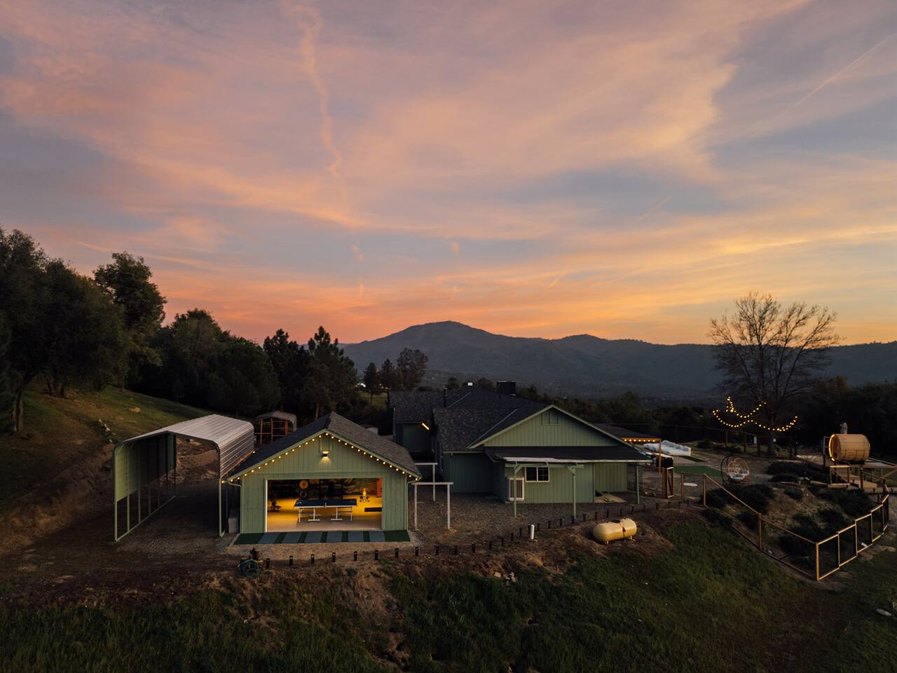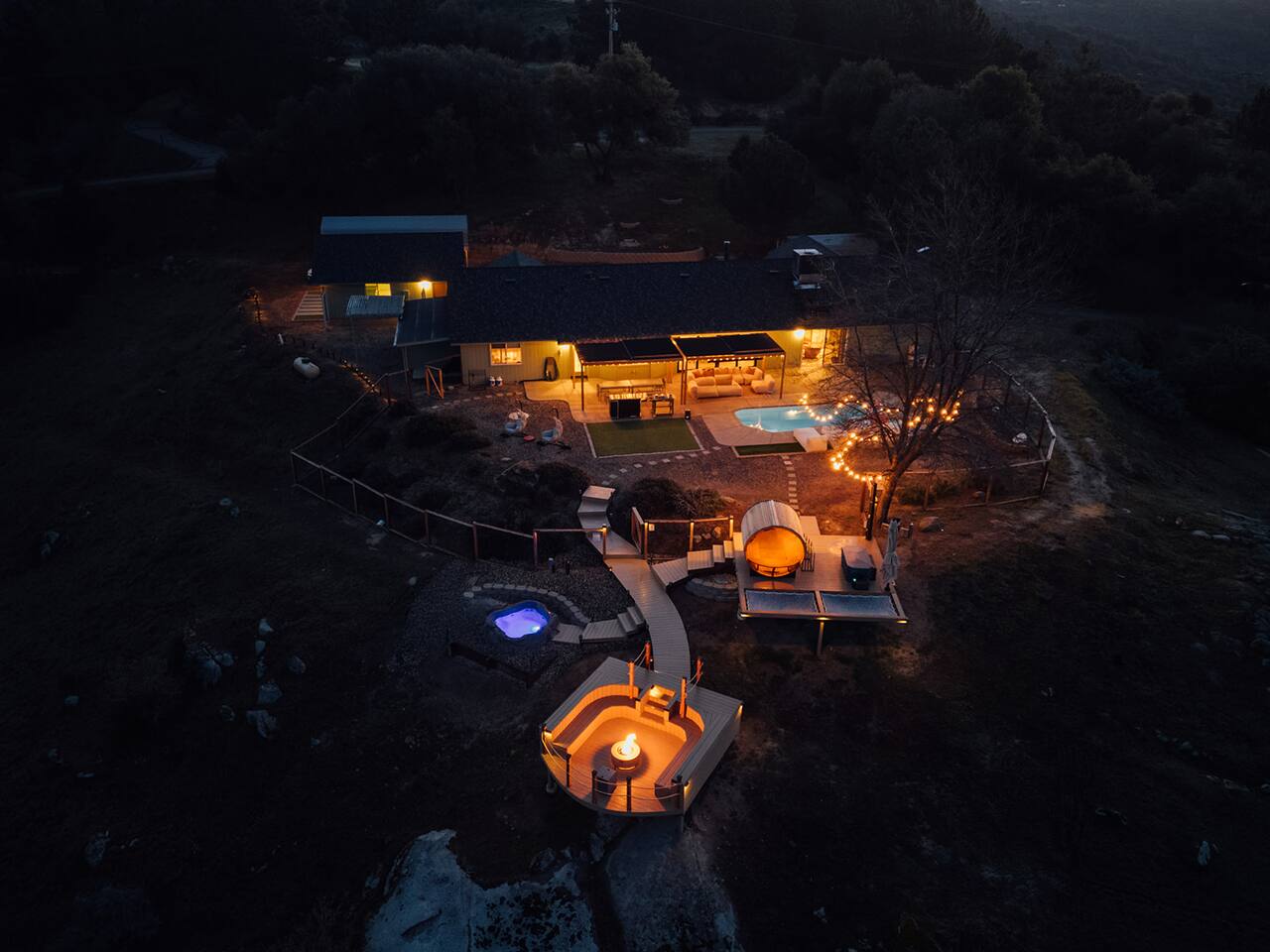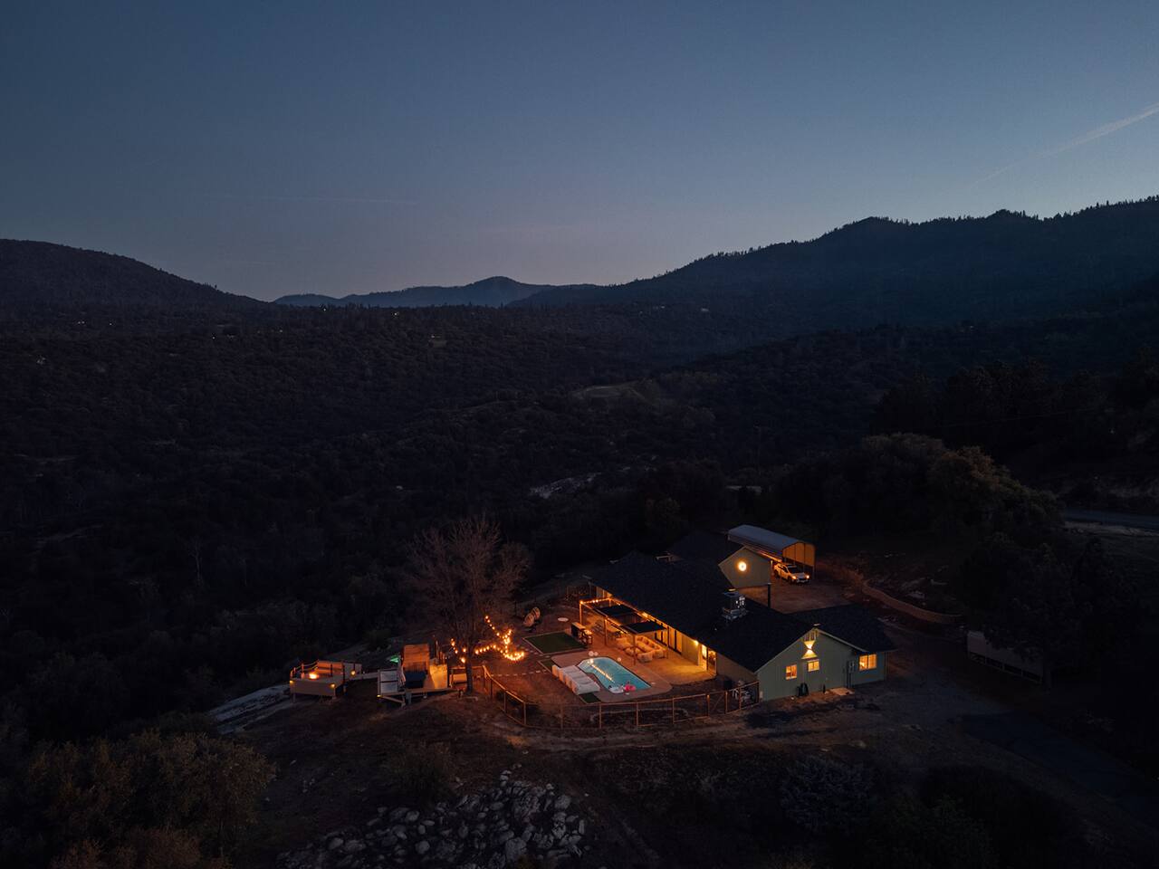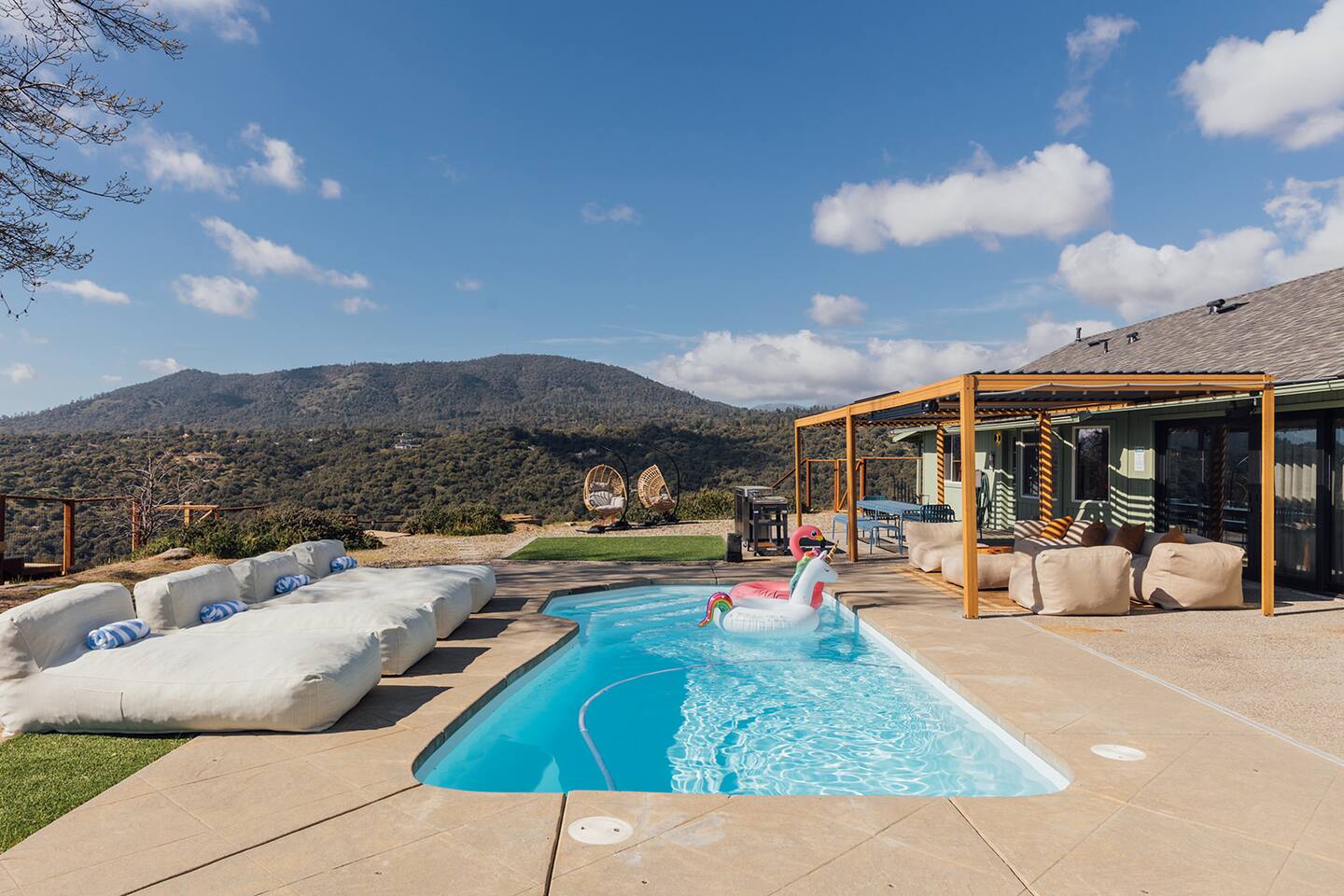 Experience quiet luxury, connection, and rejuvenation with the people who matter most. 🌙 ~38 min to Yosemite South Entrance | ~25 min to Bass Lake & Mariposa 🌙 3,000 sqft | 3.5-acre mountaintop wellness haven with views that envelop your soul 🌙 Pool + outdoor movie nights — laughter and starlit memories await 🌙 Earth Spa inspired by natural hot springs — a soak you won’t forget 🌙 Nordic Ritual — Barrel sauna, cold plunge, outdoor shower for total reset 🌙 Floating hammocks — drift atop the mountains like you’re on a cloud 🌙 Sunken fire pit deck — the ultimate gathering spot under the stars and the moon 🌙 Private gym opens to the outdoors — fresh air, sweeping views, mountain energy 🌙 Outdoor kitchen with grill, griddle, pizza stone — cook, savor, and make meals an experience 🌙 Astronomy binoculars — nights here deserve more than just a glance 🌙 Modern wood stove — cozy fireside chats on chilly nights 🌙 Stocked Nespresso bar — slow mornings, rich lattes, mountain calm in every sip 🌙 5 bedrooms | 6 king beds with hotel-quality linens — every sleep feels like a getaway 🌙 Japandi elegance meets Mid-Century Modern charm — warm, cozy, quietly cinematic ✨ Every detail here was intentionally curated to create more than a stay — a place where wellness turns into genuine happiness.