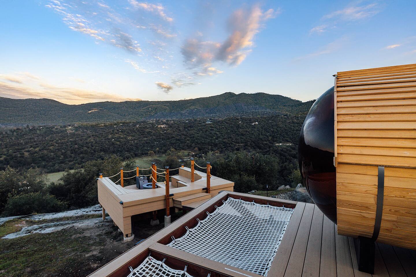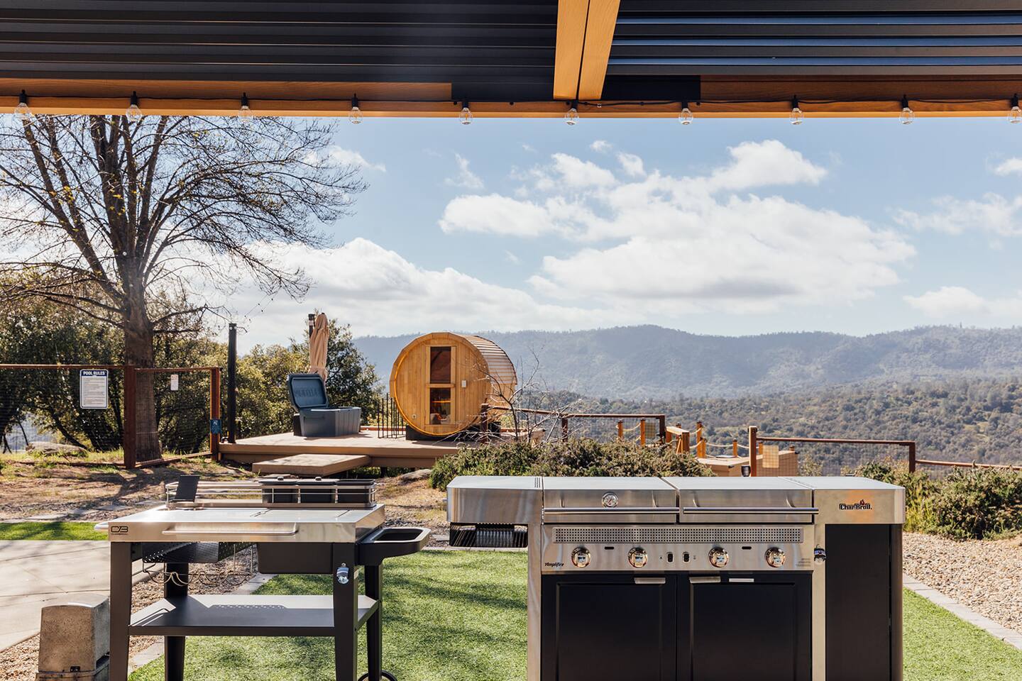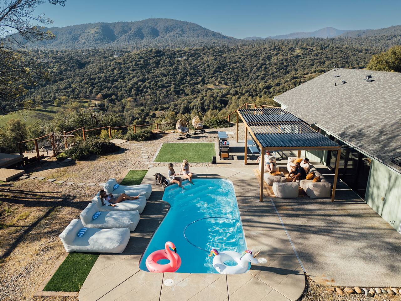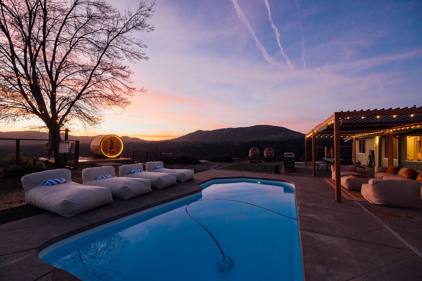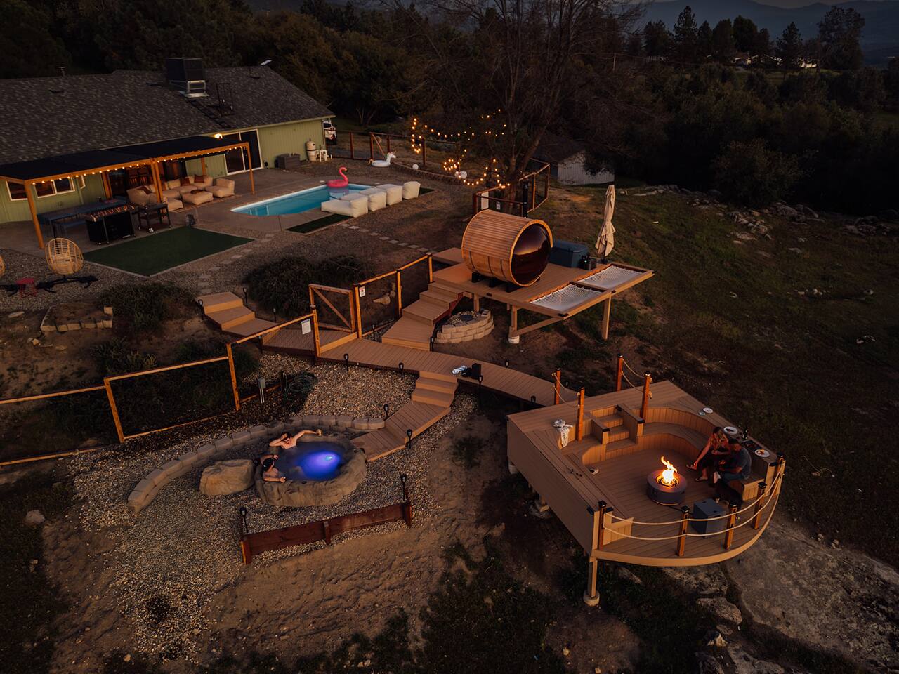 Experience quiet luxury, connection, and rejuvenation with the people who matter most. 🌙 ~38 min to Yosemite South Entrance | ~25 min to Bass Lake & Mariposa 🌙 3,000 sqft | 3.5-acre mountaintop wellness haven with views that envelop your soul 🌙 Pool + outdoor movie nights — laughter and starlit memories await 🌙 Earth Spa inspired by natural hot springs — a soak you won’t forget 🌙 Nordic Ritual — Barrel sauna, cold plunge, outdoor shower for total reset 🌙 Floating hammocks — drift atop the mountains like you’re on a cloud 🌙 Sunken fire pit deck — the ultimate gathering spot under the stars and the moon 🌙 Private gym opens to the outdoors — fresh air, sweeping views, mountain energy 🌙 Outdoor kitchen with grill, griddle, pizza stone — cook, savor, and make meals an experience 🌙 Astronomy binoculars — nights here deserve more than just a glance 🌙 Modern wood stove — cozy fireside chats on chilly nights 🌙 Stocked Nespresso bar — slow mornings, rich lattes, mountain calm in every sip 🌙 5 bedrooms | 6 king beds with hotel-quality linens — every sleep feels like a getaway 🌙 Japandi elegance meets Mid-Century Modern charm — warm, cozy, quietly cinematic ✨ Every detail here was intentionally curated to create more than a stay — a place where wellness turns into genuine happiness.