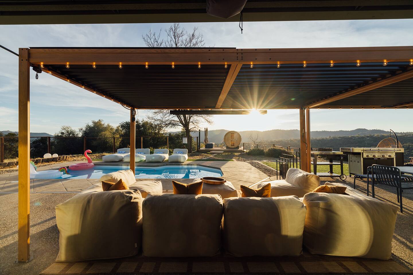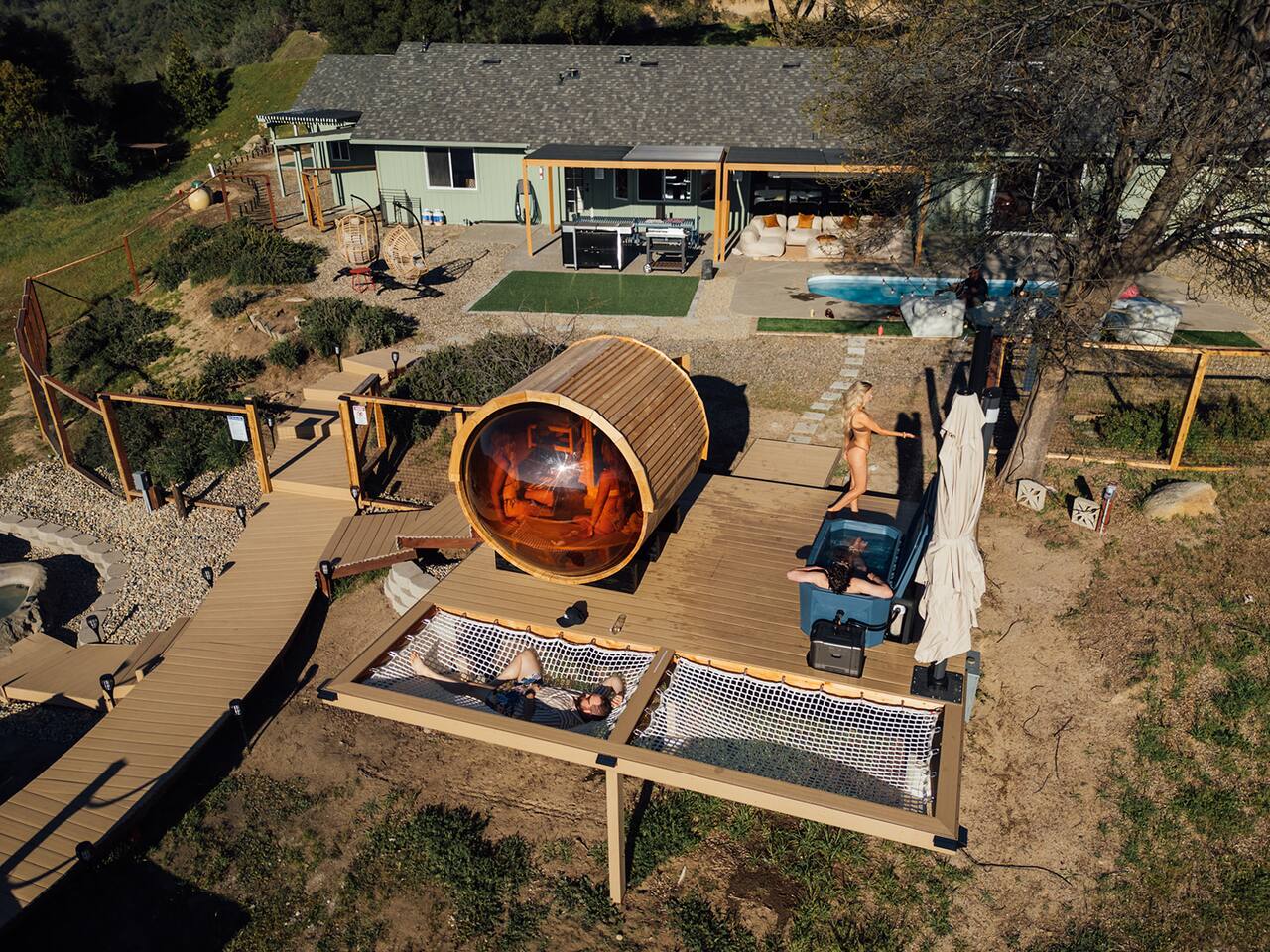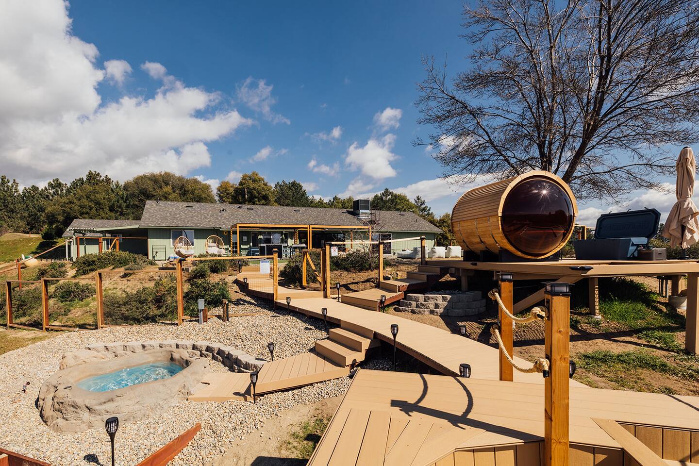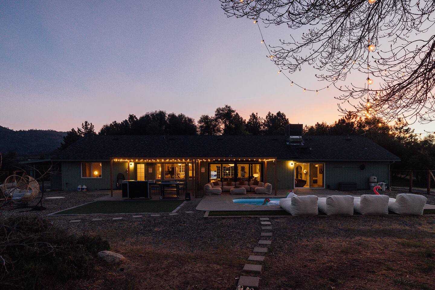 Experience quiet luxury, connection, and rejuvenation with the people who matter most. 🌙 ~38 min to Yosemite South Entrance | ~25 min to Bass Lake & Mariposa 🌙 3,000 sqft | 3.5-acre mountaintop wellness haven with views that envelop your soul 🌙 Pool + outdoor movie nights — laughter and starlit memories await 🌙 Earth Spa inspired by natural hot springs — a soak you won’t forget 🌙 Nordic Ritual — Barrel sauna, cold plunge, outdoor shower for total reset 🌙 Floating hammocks — drift atop the mountains like you’re on a cloud 🌙 Sunken fire pit deck — the ultimate gathering spot under the stars and the moon 🌙 Private gym opens to the outdoors — fresh air, sweeping views, mountain energy 🌙 Outdoor kitchen with grill, griddle, pizza stone — cook, savor, and make meals an experience 🌙 Astronomy binoculars — nights here deserve more than just a glance 🌙 Modern wood stove — cozy fireside chats on chilly nights 🌙 Stocked Nespresso bar — slow mornings, rich lattes, mountain calm in every sip 🌙 5 bedrooms | 6 king beds with hotel-quality linens — every sleep feels like a getaway 🌙 Japandi elegance meets Mid-Century Modern charm — warm, cozy, quietly cinematic ✨ Every detail here was intentionally curated to create more than a stay — a place where wellness turns into genuine happiness.