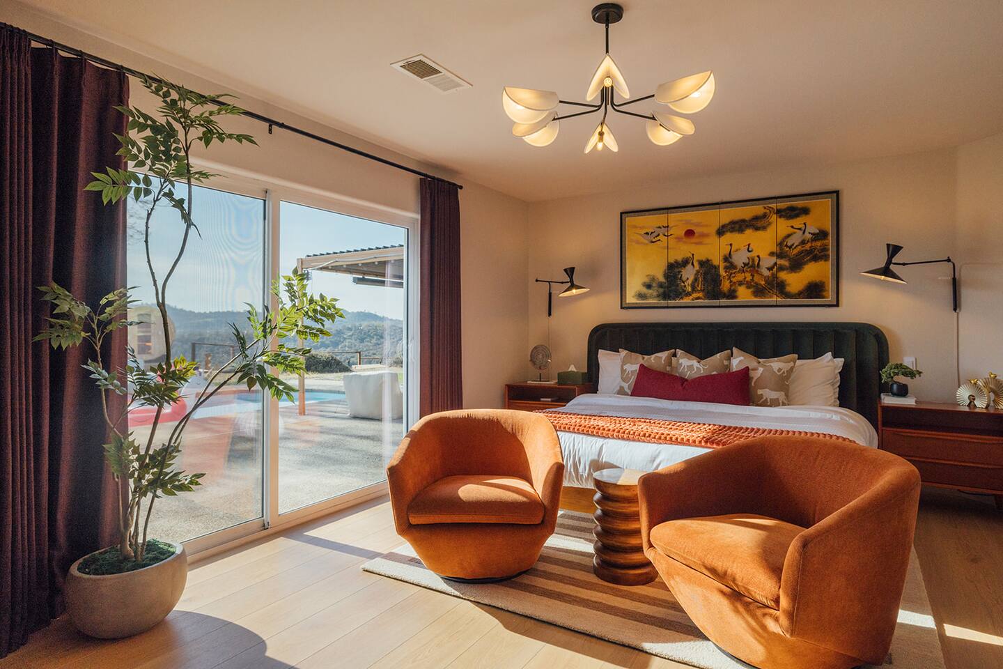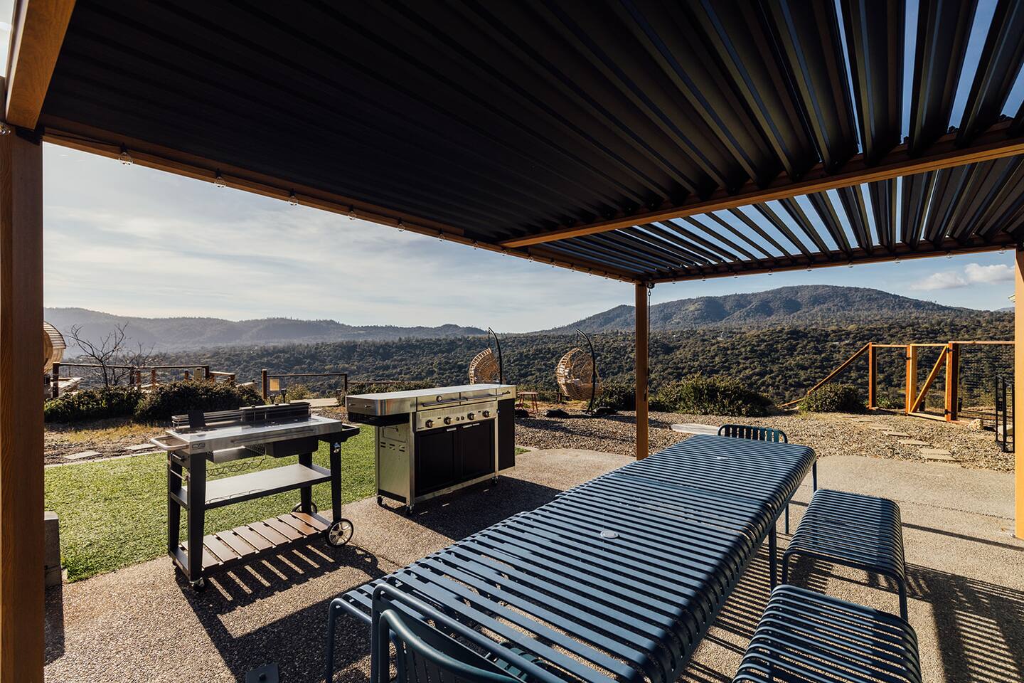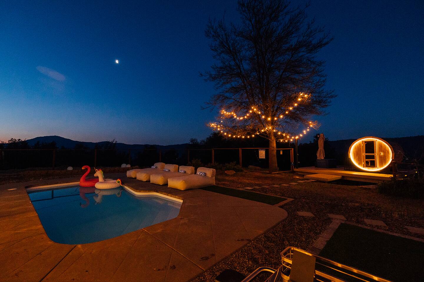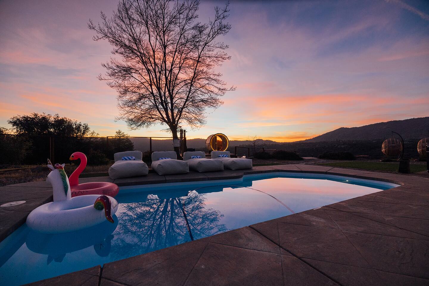 Experience quiet luxury, connection, and rejuvenation with the people who matter most. 🌙 ~38 min to Yosemite South Entrance | ~25 min to Bass Lake & Mariposa 🌙 3,000 sqft | 3.5-acre mountaintop wellness haven with views that envelop your soul 🌙 Pool + outdoor movie nights — laughter and starlit memories await 🌙 Earth Spa inspired by natural hot springs — a soak you won’t forget 🌙 Nordic Ritual — Barrel sauna, cold plunge, outdoor shower for total reset 🌙 Floating hammocks — drift atop the mountains like you’re on a cloud 🌙 Sunken fire pit deck — the ultimate gathering spot under the stars and the moon 🌙 Private gym opens to the outdoors — fresh air, sweeping views, mountain energy 🌙 Outdoor kitchen with grill, griddle, pizza stone — cook, savor, and make meals an experience 🌙 Astronomy binoculars — nights here deserve more than just a glance 🌙 Modern wood stove — cozy fireside chats on chilly nights 🌙 Stocked Nespresso bar — slow mornings, rich lattes, mountain calm in every sip 🌙 5 bedrooms | 6 king beds with hotel-quality linens — every sleep feels like a getaway 🌙 Japandi elegance meets Mid-Century Modern charm — warm, cozy, quietly cinematic ✨ Every detail here was intentionally curated to create more than a stay — a place where wellness turns into genuine happiness.